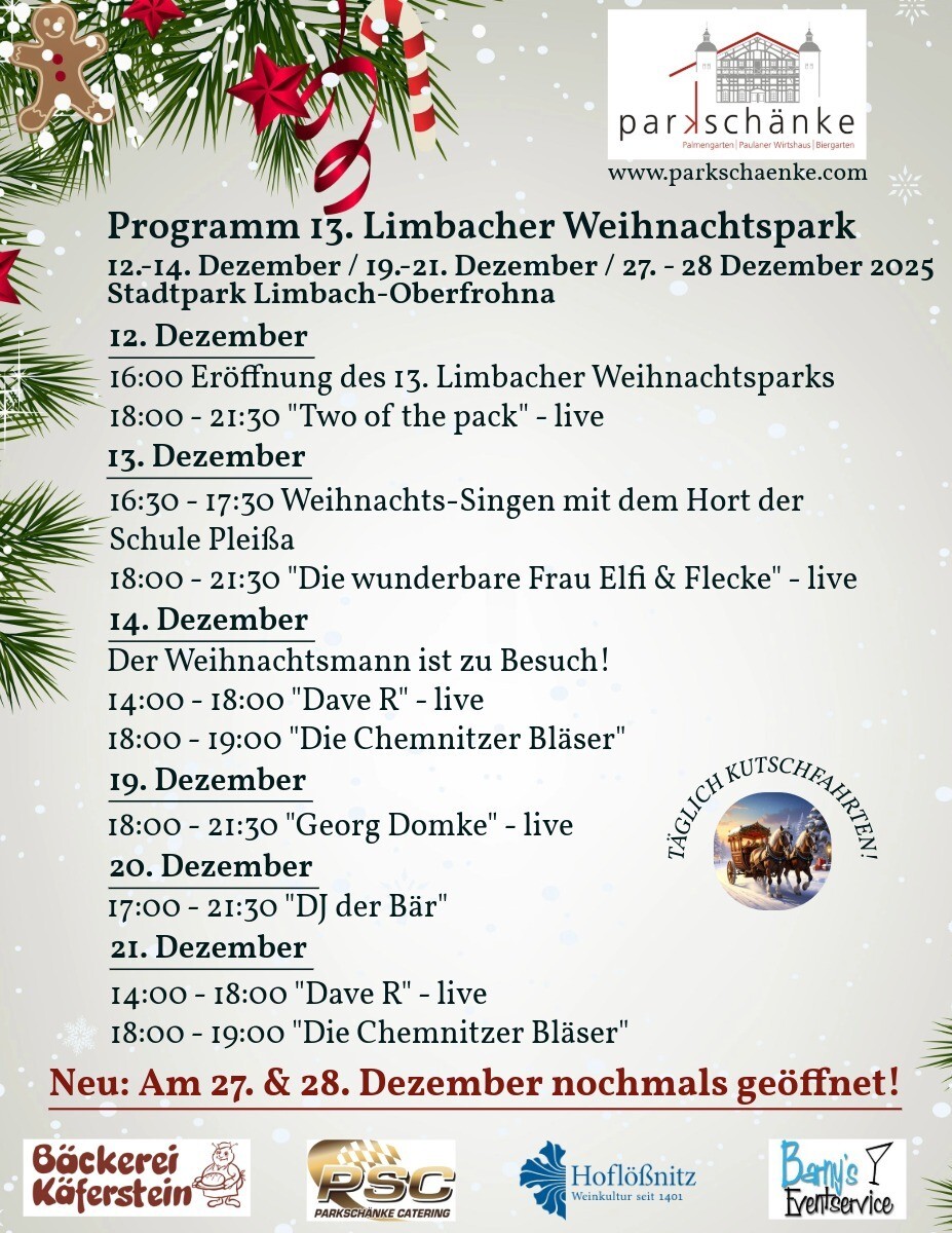 Weinfest, Oktoberfest, Live-Musik Events, Kabarett für den Frohsinn, launige Musicals und gastronomische Themenabende, was fürs Herz und bunte Kinderprogramme: Die Parkschänke Limbach-Oberfrohna ist ganzjährig ein beliebter Anlaufpunkt für Veranstaltungs- und Kulturliebende.